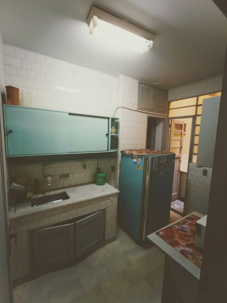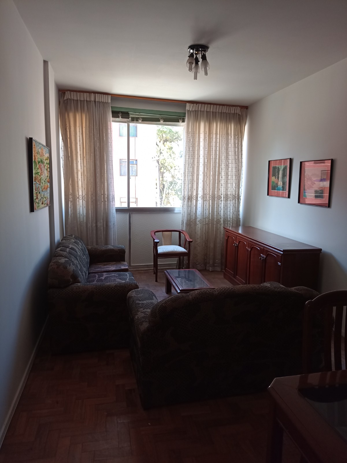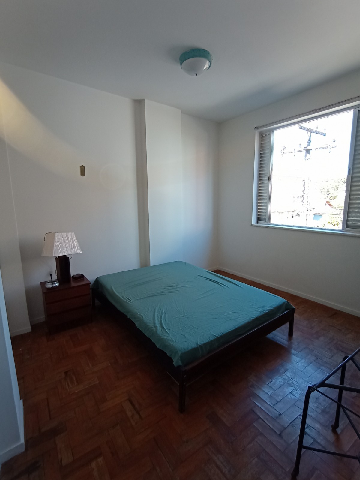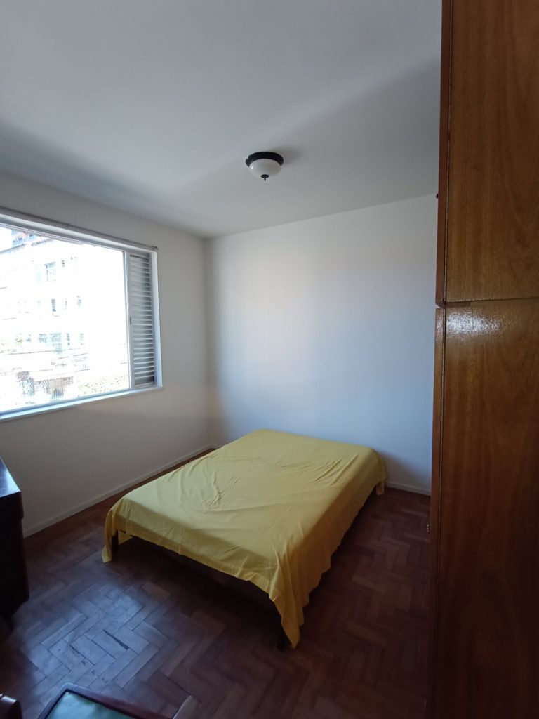 Apartamento no primeiro andar, com dois quartos, sala em dois ambientes, banheiro social, cozinha, área de serviço, WC e quarto de empregada. Uma vaga de garagem
